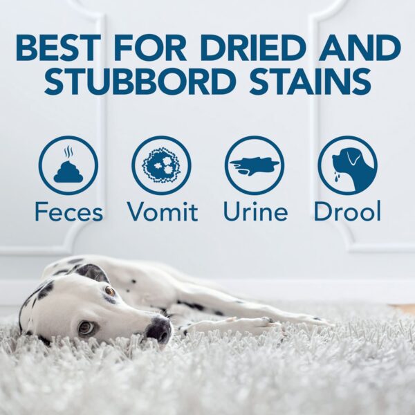 - Penetrates deep and fast to remove tough urine, blood, feces, and vomit stains.